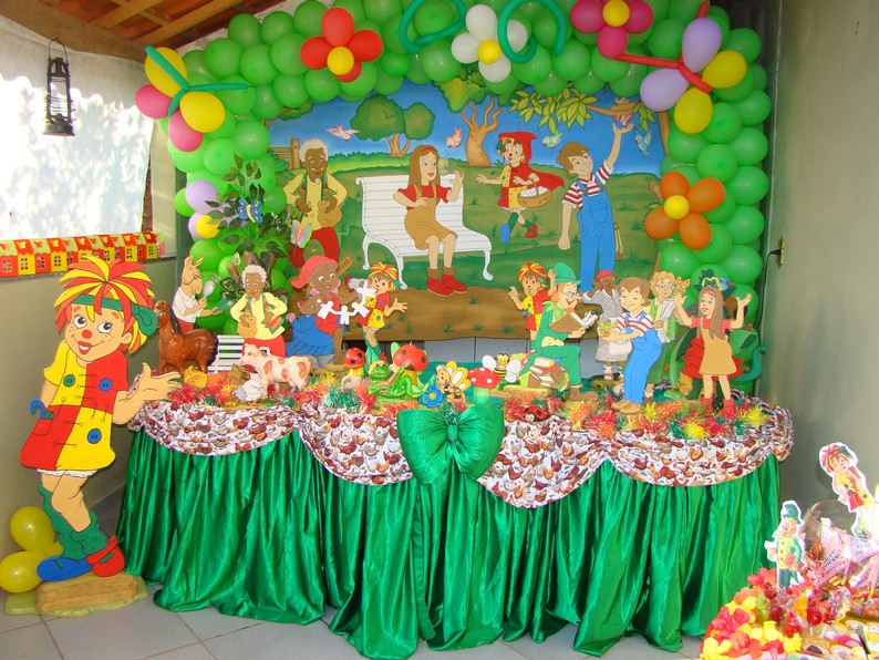 Mesa temática infantil com iluminação, movimento , personagens,painel de lona, caixa de presentes ,decoração com bolas ,montagem e desmontagem 4 tampos
